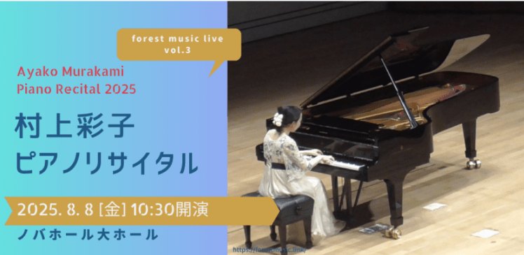 村上彩子ピアノリサイタル2025 時空を超えた詩2025.8.8(金)つくば市ノバホール大ホール