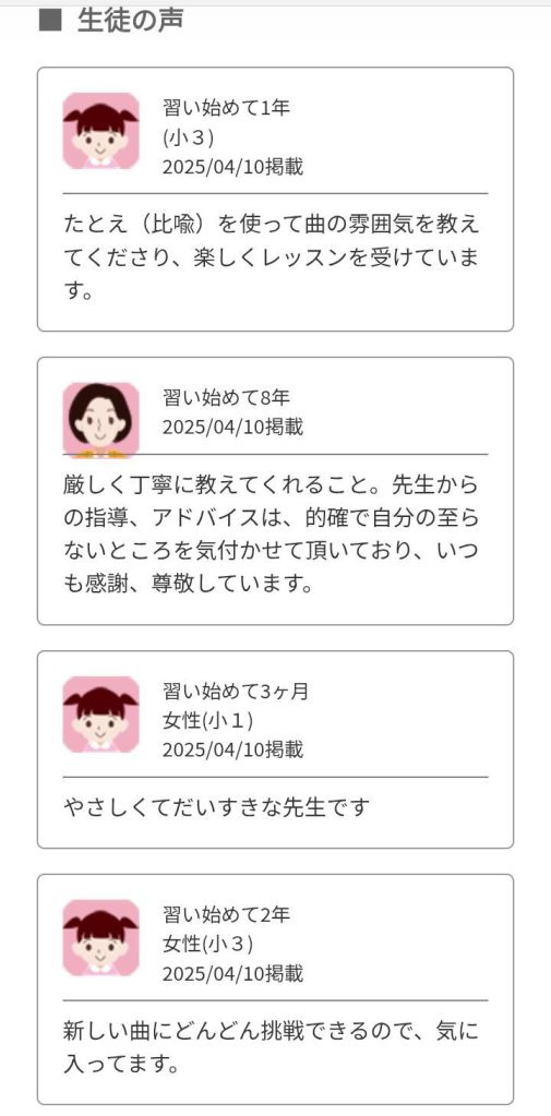 大人向け、コンクール対策向け、指導者向けレッスン、個別ペースでの学習に