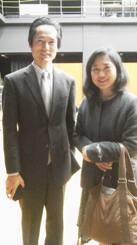 研修交流会の第2講座(俳優さんによる演劇と音楽の実践講座)では、ひょんなことからピティナの専務理事福田氏と 演劇のパートナーを組むことにになり、 ・・・・・・・・・・・こんな偉い方と いきなり 役になりきり???短いながらも台本の練習・・・ 汗)))言うまでもありませんが、このように紳士、とても笑顔の素敵な方ですね。