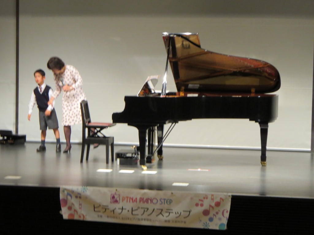 ステップでは、講評の時間が何回かあります。1回目の講評で渡辺泉先生が、手首がかくんと下がっても気がつかず?演奏してる方が多かったので指摘されてて、手首がこんなに下がっていて、これでは演奏がしにくいでしょう!!と実演しながらお話くださいました。コンペの会場や、今日のステップで皆さんが弾いたような、グランドピアノで練習してる方?手を挙げてください! とおっしゃると、2人ほどの手が挙がり、アップライトで練習してる方は? に 数名の手が挙がり、電気のピアノで練習してる方は?に かなりの数の方が手を挙げ・・・・でした。 手首が・・・の言葉にこめられていることがどういうことなのか、どれくらい会場にいらしたパパやママに通じたかはわかりません。楽器メーカーの調律の方が、「販売実績を上げるために罪作りなもの発売してくれたおかげで本物のピアノで練習する子が減ってピアノが下手な子が増えてしまった」と、昔嘆いていらしたのが思い出されました。どういう楽器で普段練習しているかは聴く人が聴くとすぐわかります。はじめからアコーステックな楽器で(アップライトやグランドピアノ)練習しているとこんなにできるのね!!という見本のような方が、2回目のワンポイントレッスンの受講者の方でした。小1で、バッハインヴェンション、ドビュッシーを見事に演奏、渡辺泉先生のレッスンを即理解して吞み込み早く舌を巻くほどの理解力表現力に先生も喜んでくださいました。