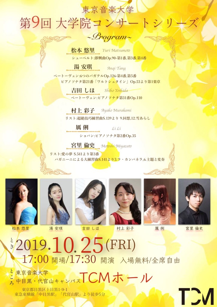 院生ピアノコンサート 投稿者:forestmusic11 11月 201924 10月 2022カテゴリー:blogタグ:つくば市ピアノ教室、コンサート、ピアノレッスン、ピアノ楽譜、リスト、雪あらし、超絶技巧練習曲、回想、東京音楽大学大学院 中目黒の東京音大へ院生のピアノコンサートを聴きに行ったり、9月10月はちょこちょこ♩出かけています。秋冬イベントや、レッスン備品用に楽譜を何十冊か購入 ♫和音単音の音符カードがくたびれてるし・・。 来年発表会を計画中。ピアノのレッスン用備品楽譜いろいろ準備。また本棚一つ買わないと。 お洒落なホールでした☺☺☺👏👏👏👏👏 いいね 読み込み中… 投稿者: forestmusic こんにちは♪ピアニスト・ピアノ指導者、アーティストの演奏会企画をしております。生徒さんとのレッスンは毎回新しい発見があって楽しいです。 他の投稿を表示