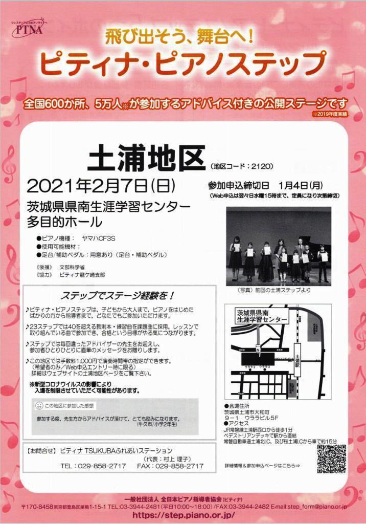 令和3年(2021年)2月7日(日)ピティナピアノステップ土浦地区のチラシです。