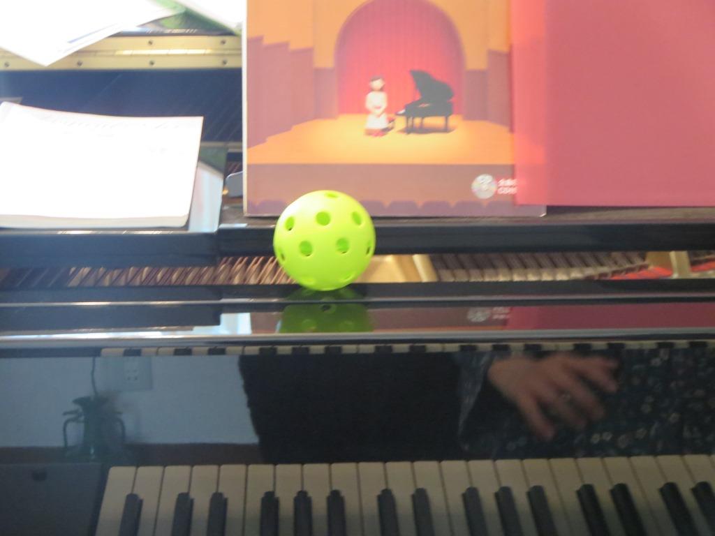 おとといのRちゃん☺レッスン🎹中の写真です。合理的な体の動きを身に付けていけるようボールを使ってのレッスンするときもあります。開かれた耳つくりも指導の目標です。