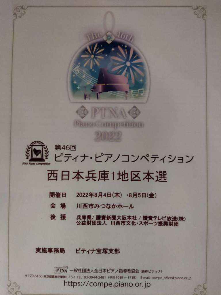 8月4日5日の2日間、ピティナピアノコンペティション西日本兵庫1地区 へお伺いしておりました。宝塚支部の稲垣先生はじめ皆様に大変お世話になりました。大ベテランの先生方ばかりの中お仕事させていただき光栄です。ありがとうございました。
