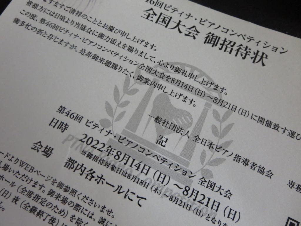ピティナの予選本選審査に各地出張した今夏でした。ピティナがコンペ全国大会を都内で開催中です。生徒ちゃん達には、夏休み中のこの時期、自分と同年代の幼小中高生大学生のピアノ弾きたちがどれくらいのものかぜひ聴きに見にいって刺激を受けて欲しいです。