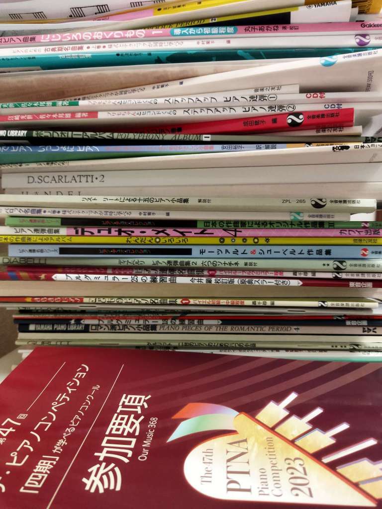 沢山曲があって毎日弾いても弾いても終わらないほどに課題曲は毎年の事、量が多くて本棚が満杯です。