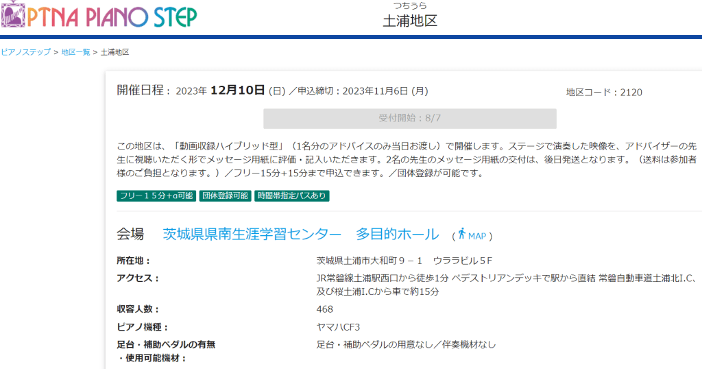 2023年12月10日(日)開催、ピティナ・ピアノステップ土浦のWebページが公開されました!