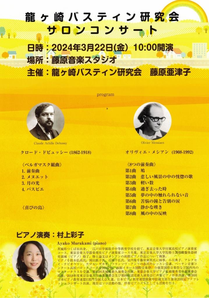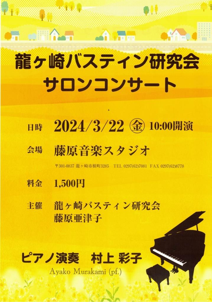 先日3月22日開催された「龍ヶ崎バスティン研究会サロンコンサート」に娘村上彩子が出演しました。