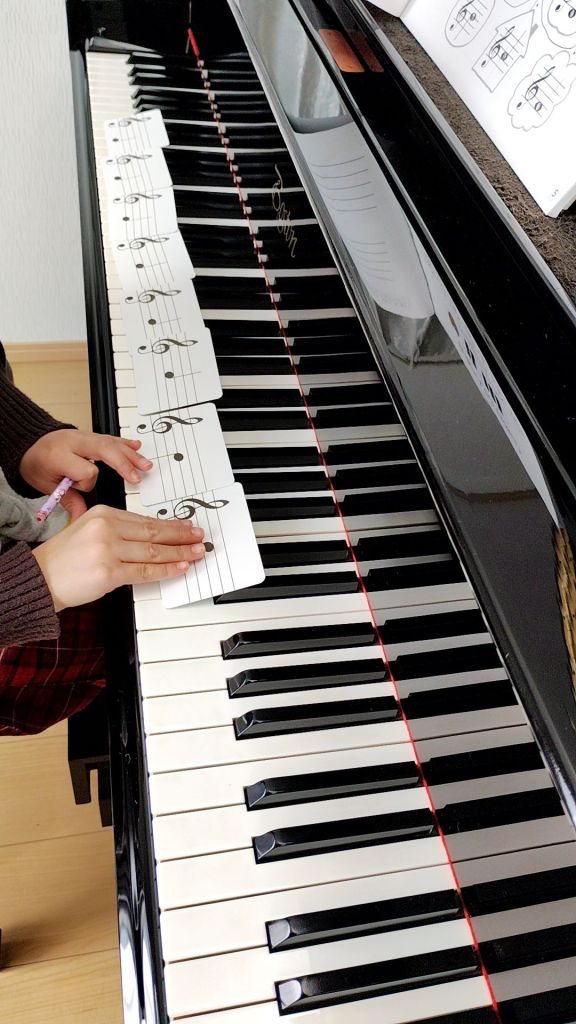 3月からピアノをはじめた小1生徒さんのレッスン風景です。確かな音程で歌えるし、小1位だと字がすらすらと書けるからワークブックもどんどん進みます。スケールとカデンツ全調、和音の転回やリズム等、ピアノ演奏の基礎をしっかり身につけながらレパートリーを増やしていきます。おうちでもグランドピアノで練習できるそう。練習環境は大事ですね。