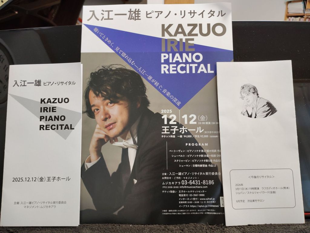 2025.12.12入江一雄氏のピアノリサイタルを聴きに行きました。王子ホールにて。