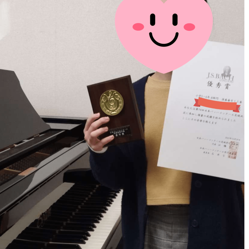新年のレッスン開始しました。バッハコンクールで優秀賞を獲得した小5生徒ちゃんが、盾と賞状を見せてくれました。