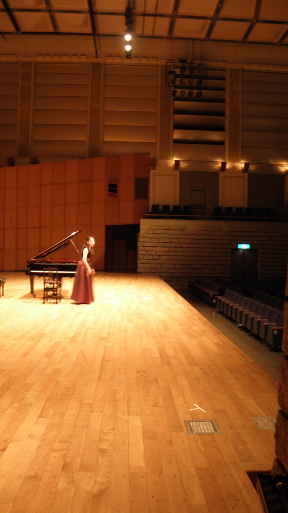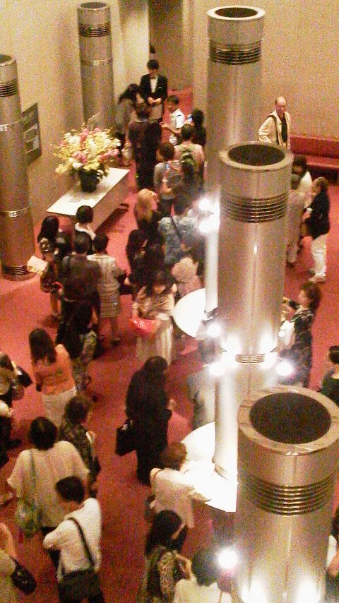台風で交通機関が止まってしまっているところが多いようですが、みなさんのところは大丈夫でしたか?昨日は若手ピアニスト實川風さんのリサイタルを聴きに行ってきました。私の好きなフランクの前奏曲とアリア・終曲もプログラムに入っていて、魅力的なプログラムでした。弾き進むごとに演奏者らしさがでてよかったと思います。演奏が始まってしばらく気が付かなかったのですが、華道家の假屋崎省伍氏がコンサートに聴衆として来られているのに、途中で*が気が付き・・・ ロビーに飾られていた祝花は、大きな花瓶に隙間なく全部が蘭の花、生きのいいのばかりをどっさりと豪快に生けてありました。 写真に小さく写っていますが、一番奥がピアニスト實川氏と演奏者訪問の聴衆の列、お花、金髪の假屋崎氏。演奏会のあとなかなか人が帰らないどころか假屋崎氏を見ようと、戻ってくる人たちが多くて。珍しいもの見たさ。